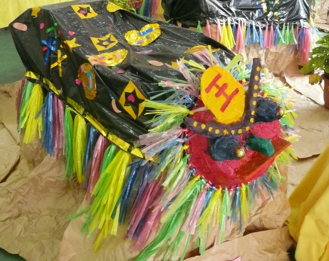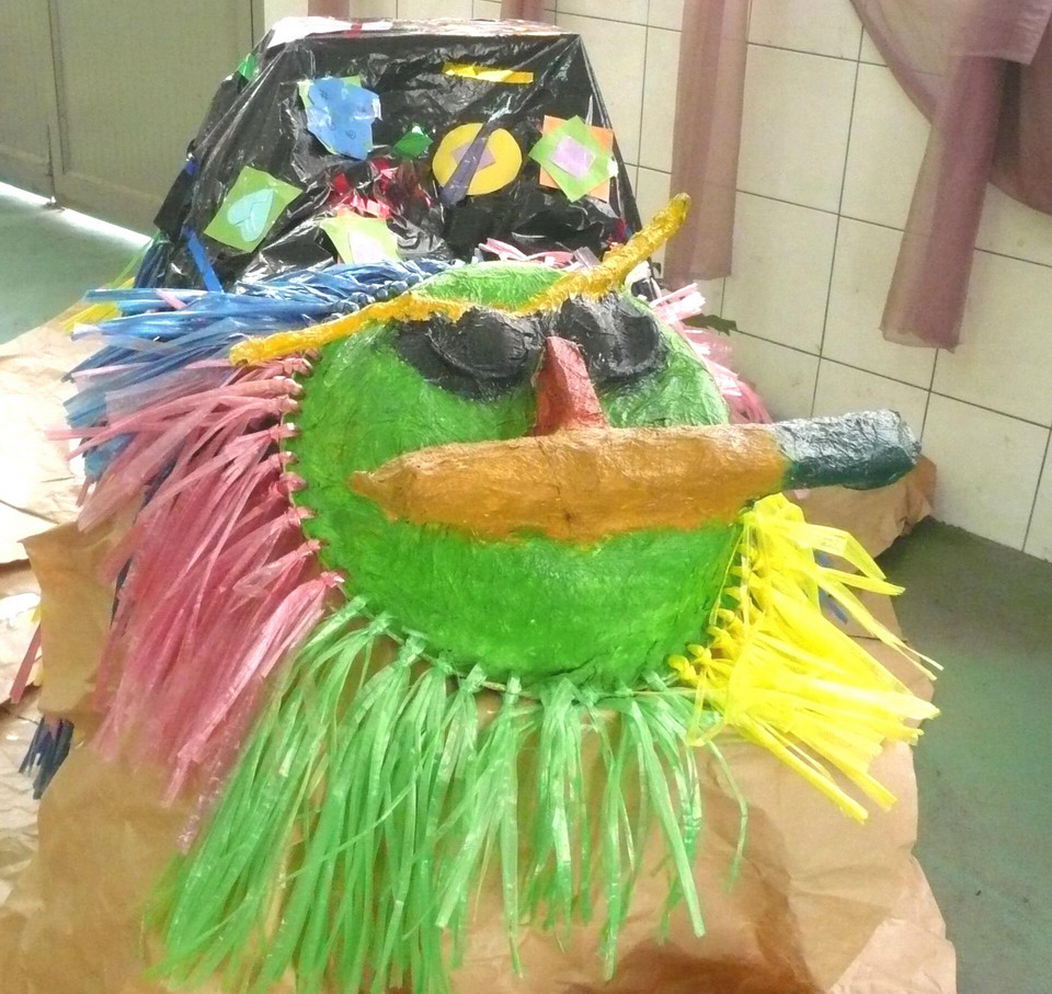 高年級製作整隻獅子,低年級呢?嗯!低年級不會做,就來舞獅吧!