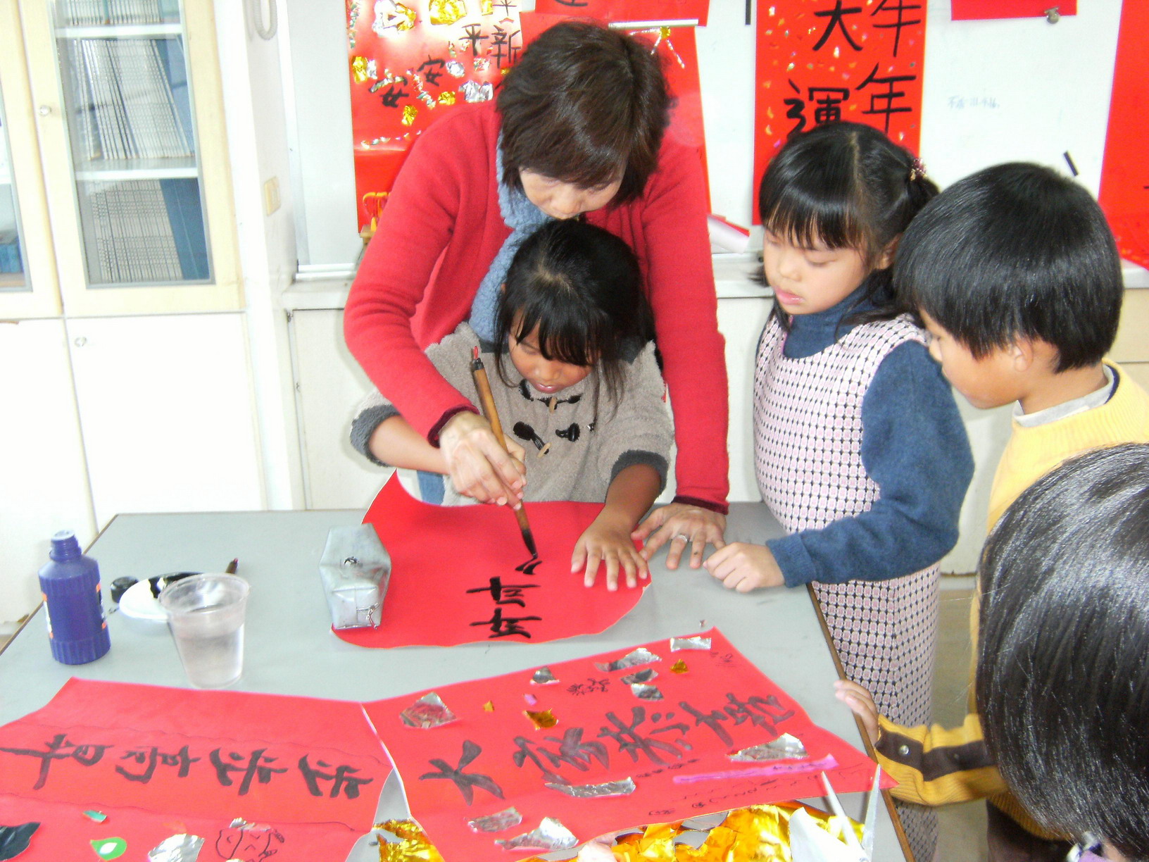 張主任指導高年級生寫書法